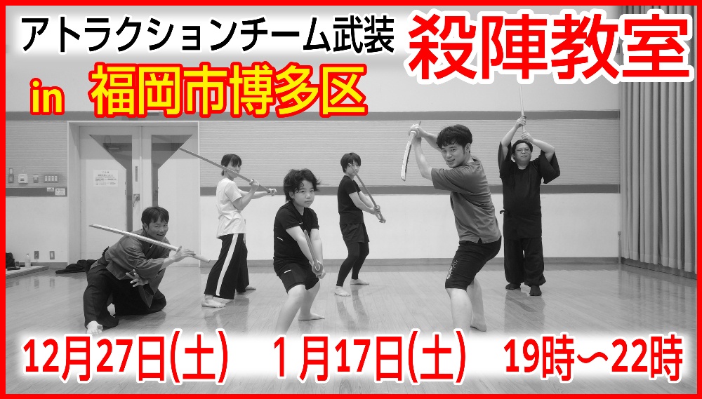 福岡市博多区千代での殺陣教室、今月は12月27日(土)に開催予定です。